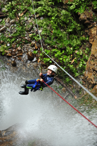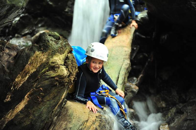 Alle Kinder werden von Kopf bis Fuß mit einem dicken Neoprenanzug eingekleidet. So kann ihnen das kalte Wasser nichts anhaben und die Schluchtenwanderung bleibt in guter Erinnerung. Beschreibung