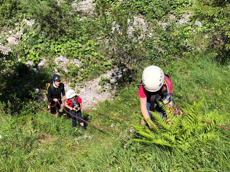 - Trittschulung - Wie gehe ich auf steilem Gras, geneigten Felsplatten und ausgestetzen Schotterhalden?