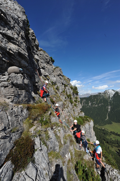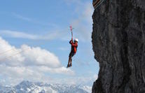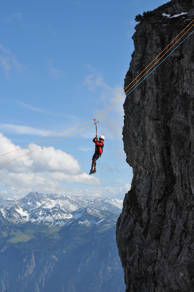 Hier steht ein besonderes Gipfelerlebnis im Vordergrund. Die Elserspitze thront stolz über den Dächern von Bludenz und wird über einen mobilen Klettersteig bezwungen. Der Abstieg erfolgt über ein atemberaubendes Flying Fox auf 1980 m.